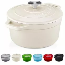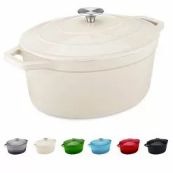 6 qt. Oval Cast Iron Nonstick Dutch Oven in Cream with Lid by vancasso