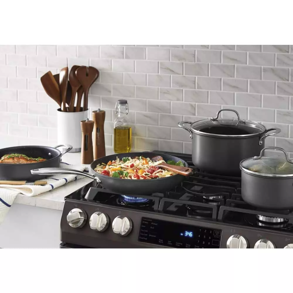 - Pro cookware – stronger than stainless steel cookware, hard-anodized aluminum exterior is dense, nonporous, highly wear-resistant, and conducts heat incredibly well for the ultimate pro performance
