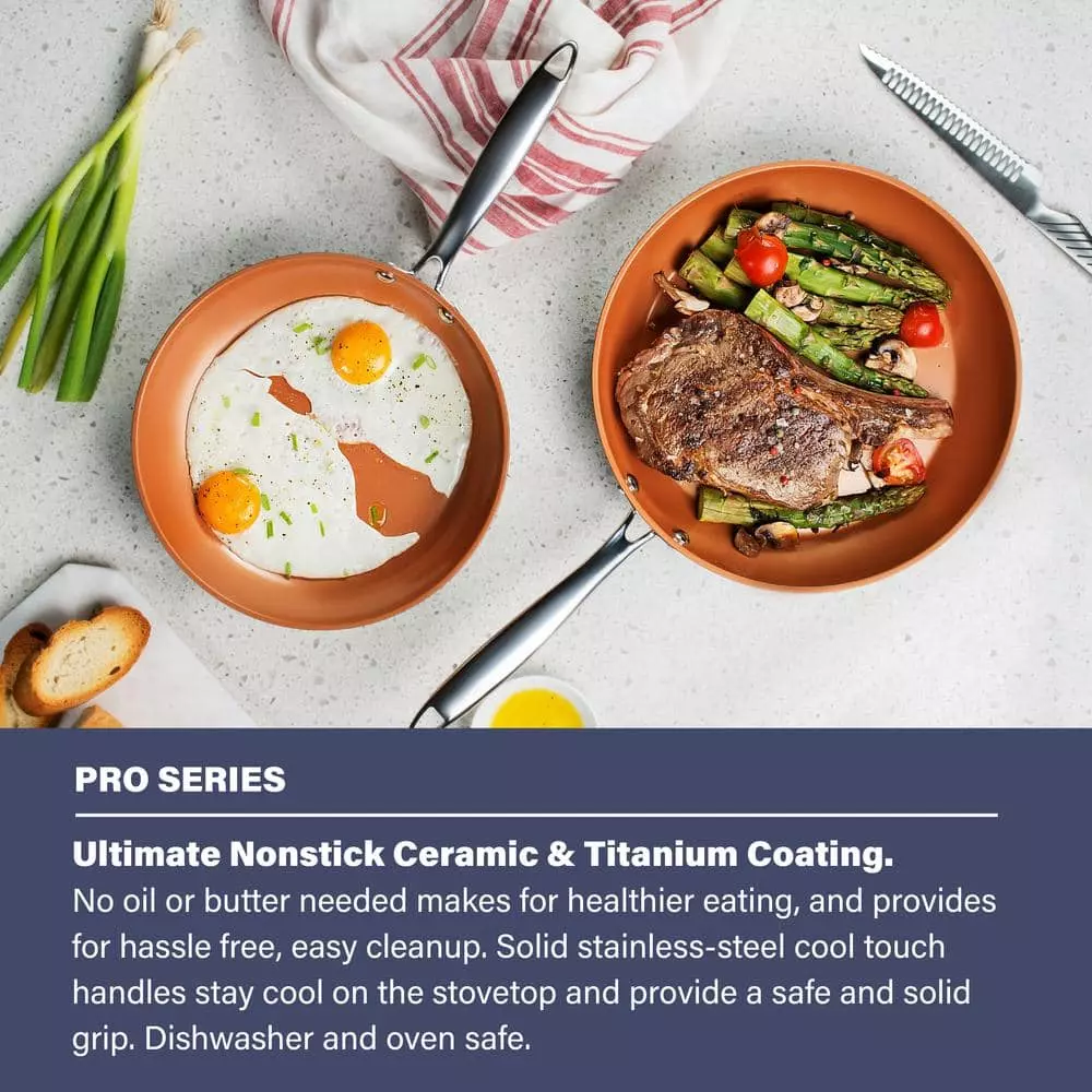 - Premium nonstick cooking surface reinforced with the Gotham Steel Titanium and Ceramic delivers the ultimate food release. No oil or butter needed makes for healthier eating, and provides for hassle free, easy cleanup.