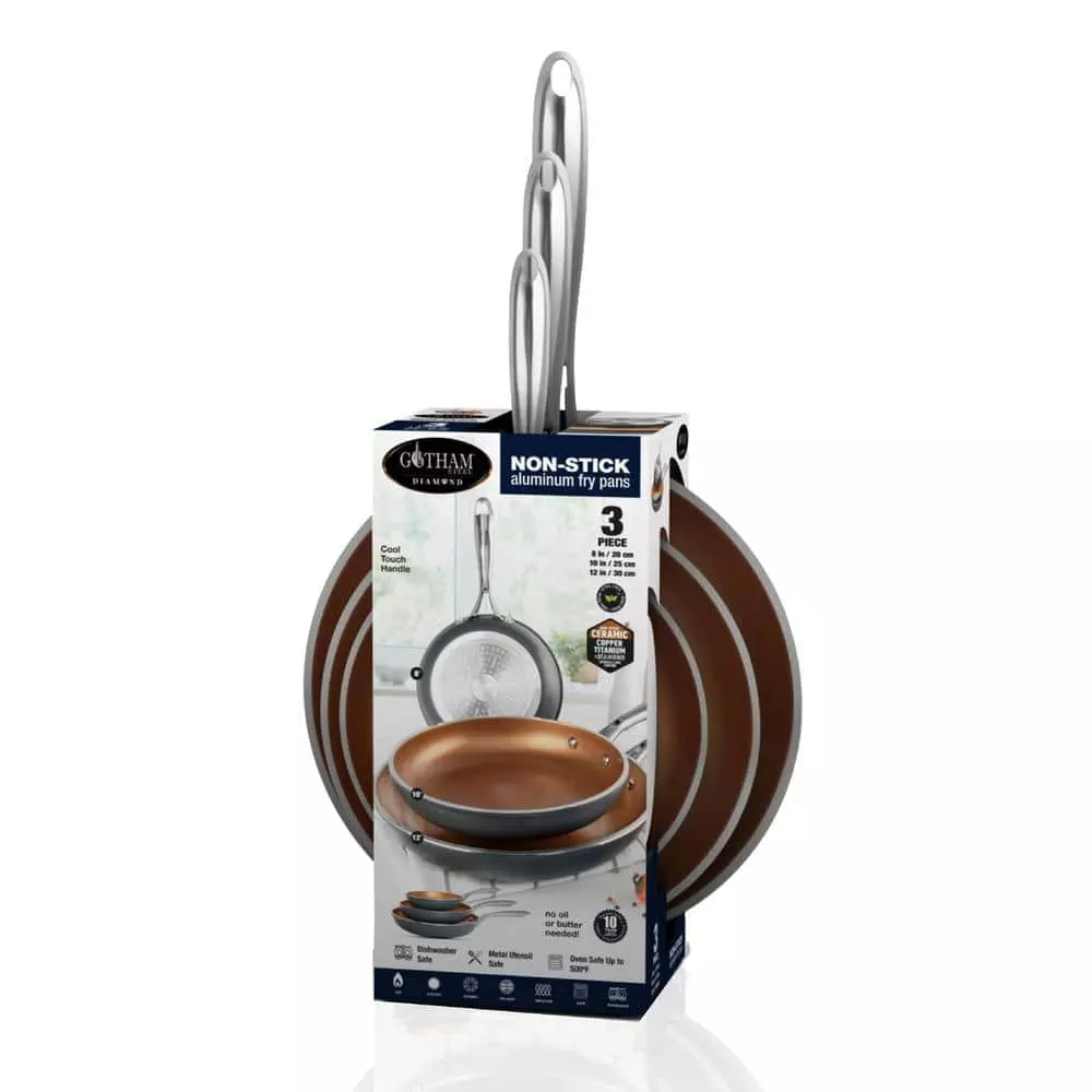 - Gotham Steel cookware – with over 30 million happy customers, Gotham Steel has revolutionized kitchens across the world with the introduction of the nonstick ceramic copper cookware, new for 2021, our award-winning frying pans have improved in every area including the nonstick coating, stay cool handles, exterior finish, and durability, including infusing diamond-like particles to the surface to ensure the pan doesn’t scratch, we’re excited to welcome to you and yours to the Gotham Steel family