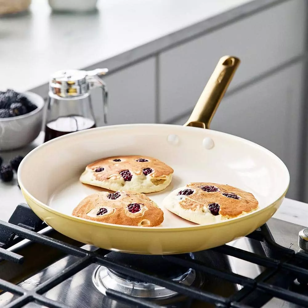 - GreenPan Thermolon healthy ceramic nonstick coating is free of PFAS, PFOA, lead, and cadmium, so it will never release toxic fumes, even if it’s accidentally overheated