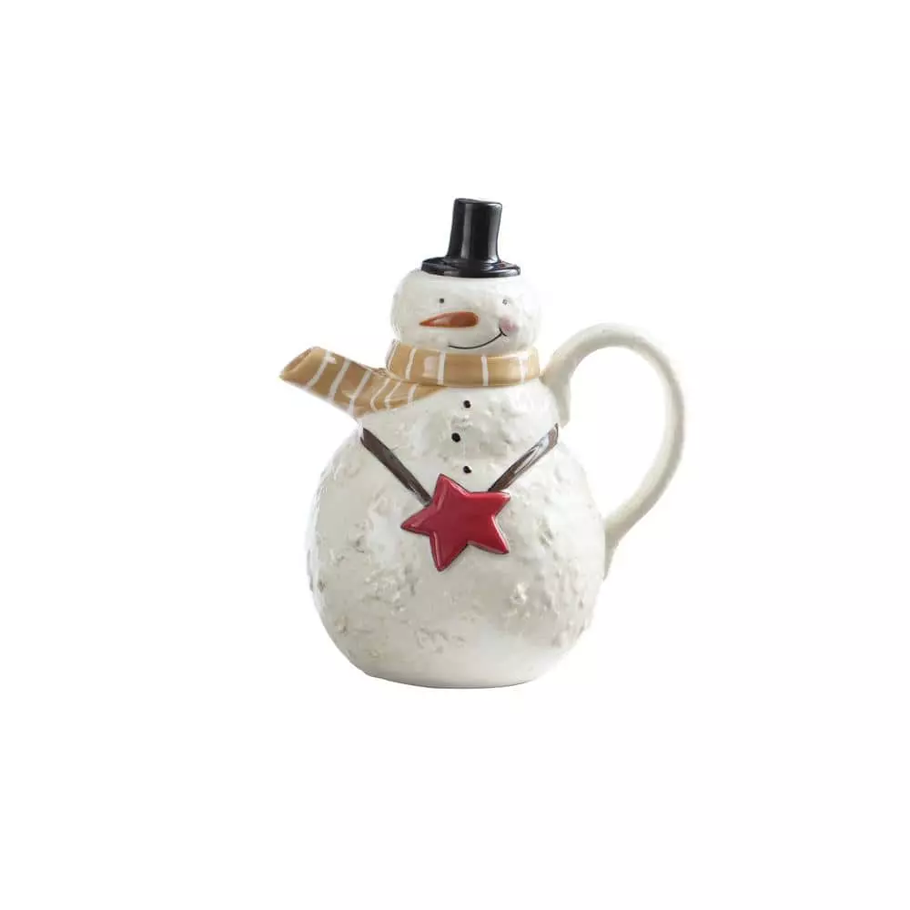 Snow Friends ceramics feature an in glaze decal of Santa by artist Teresa Kogut. This Snowman teapot is great to use through out the holiday season. Dishwasher and microwave safe.