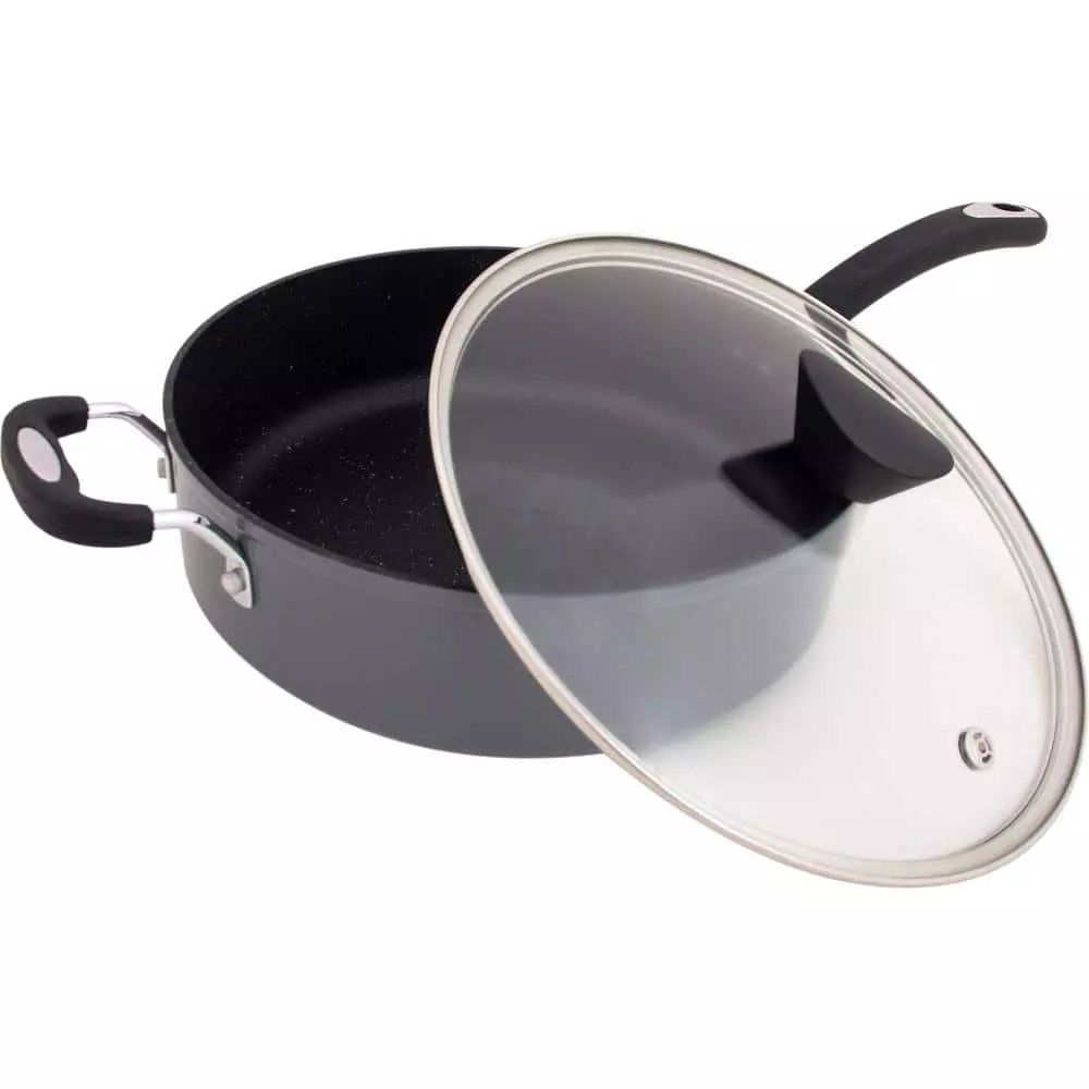 - Multitasking sauce pan features a layered aluminum core that conducts and sustains heat, with a hardened scratch-resistant coating that is super easy to clean
