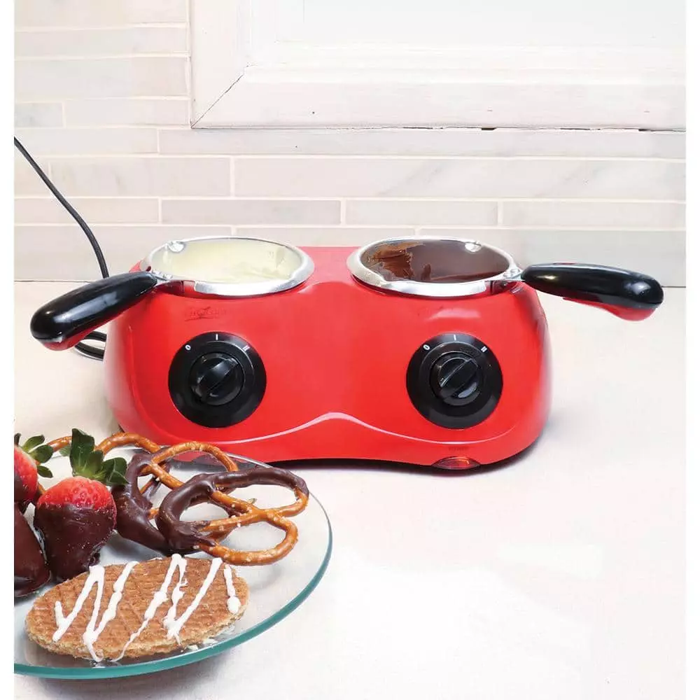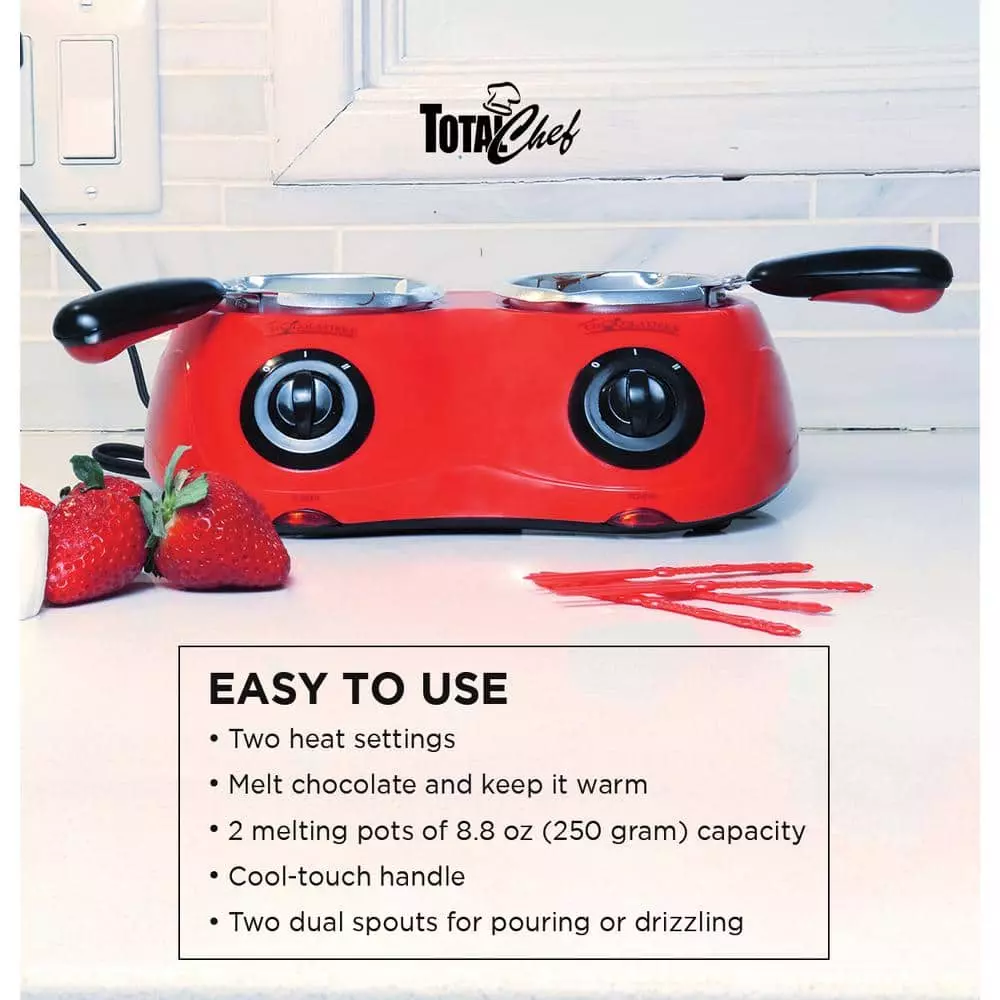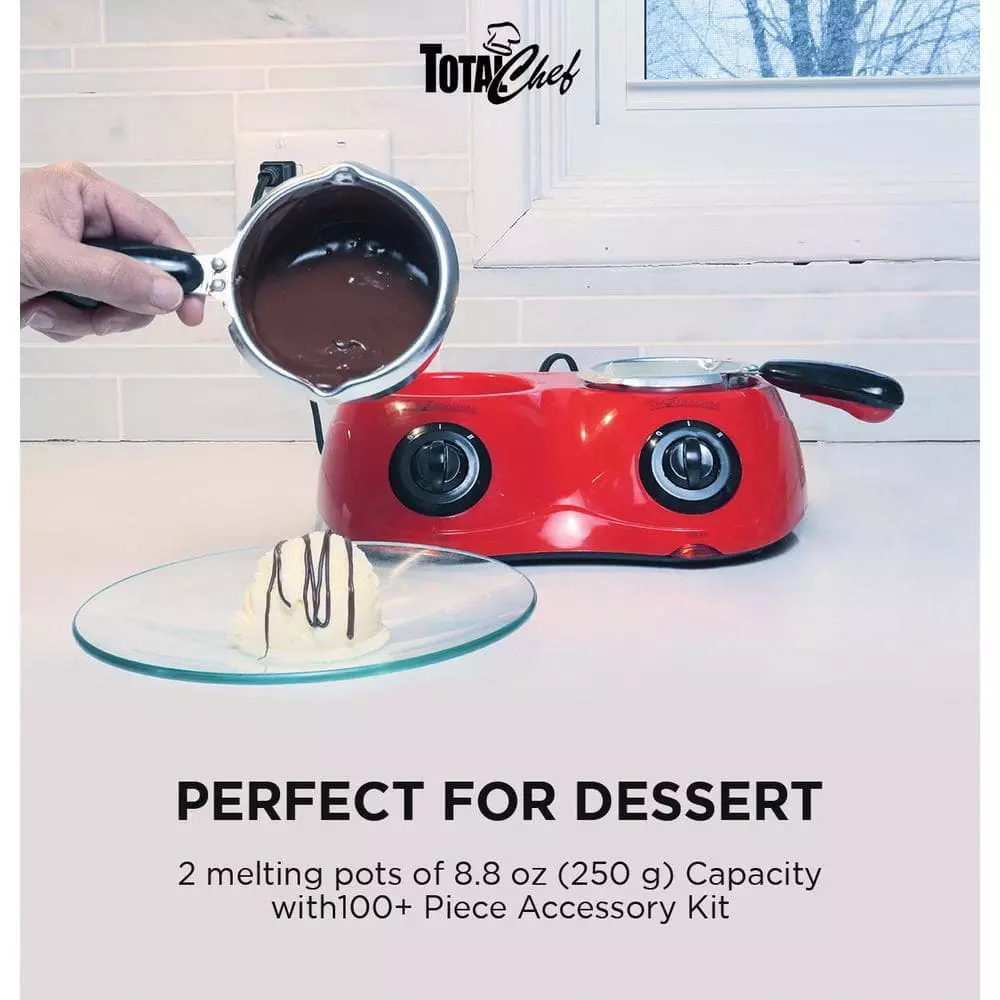 Serve two types of delicious chocolate fondue dessert or create a variety of homemade candies. All-in-one set includes two 1-cup melting pots and 100+ piece accessory kit. Explore your creative side with this multipurpose electric chocolate melter!